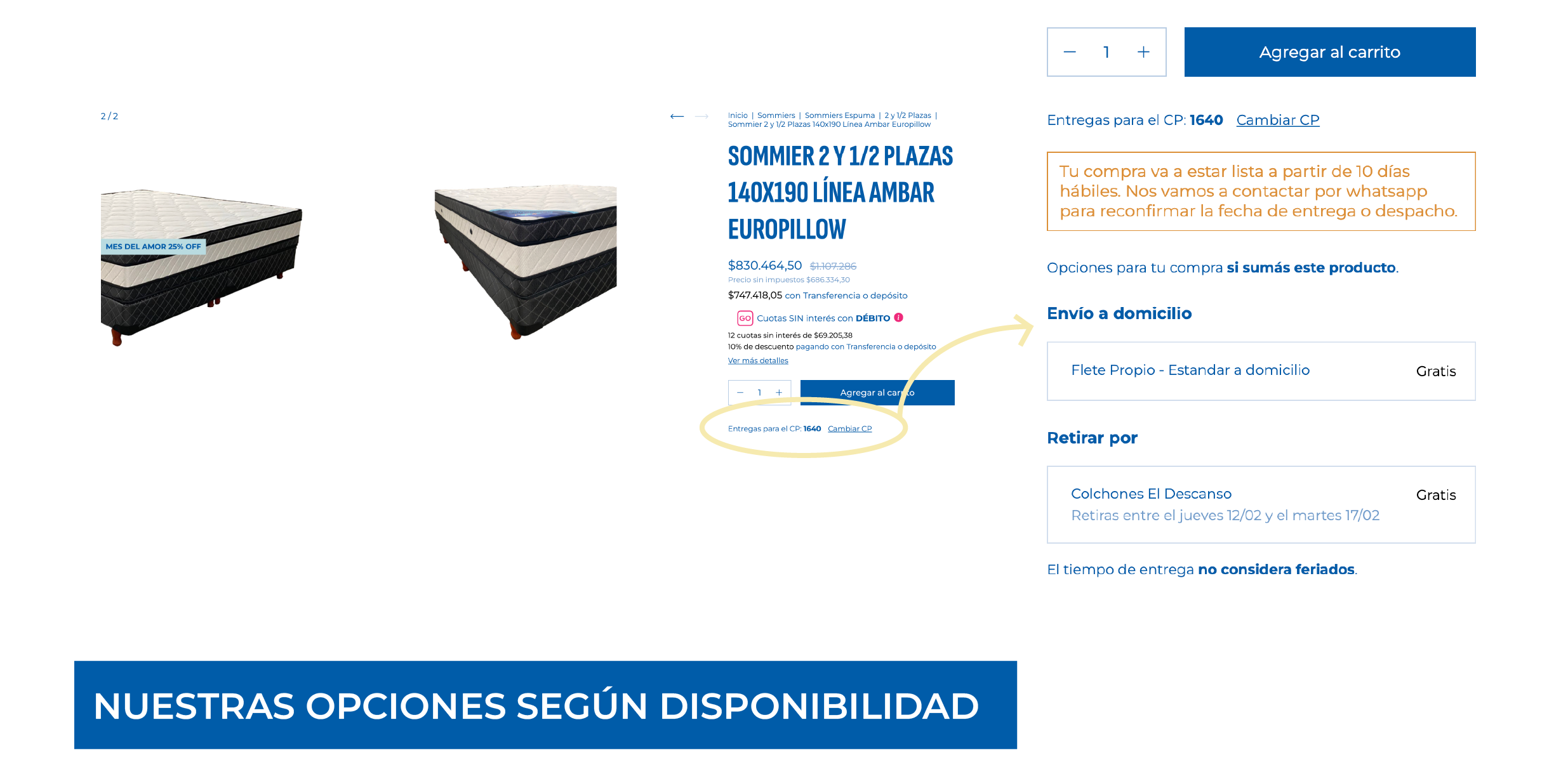 La plataforma puede mostrar opciones de envíos con distintos transportes según el CP que se indique. Puede pasar 2 situaciones: