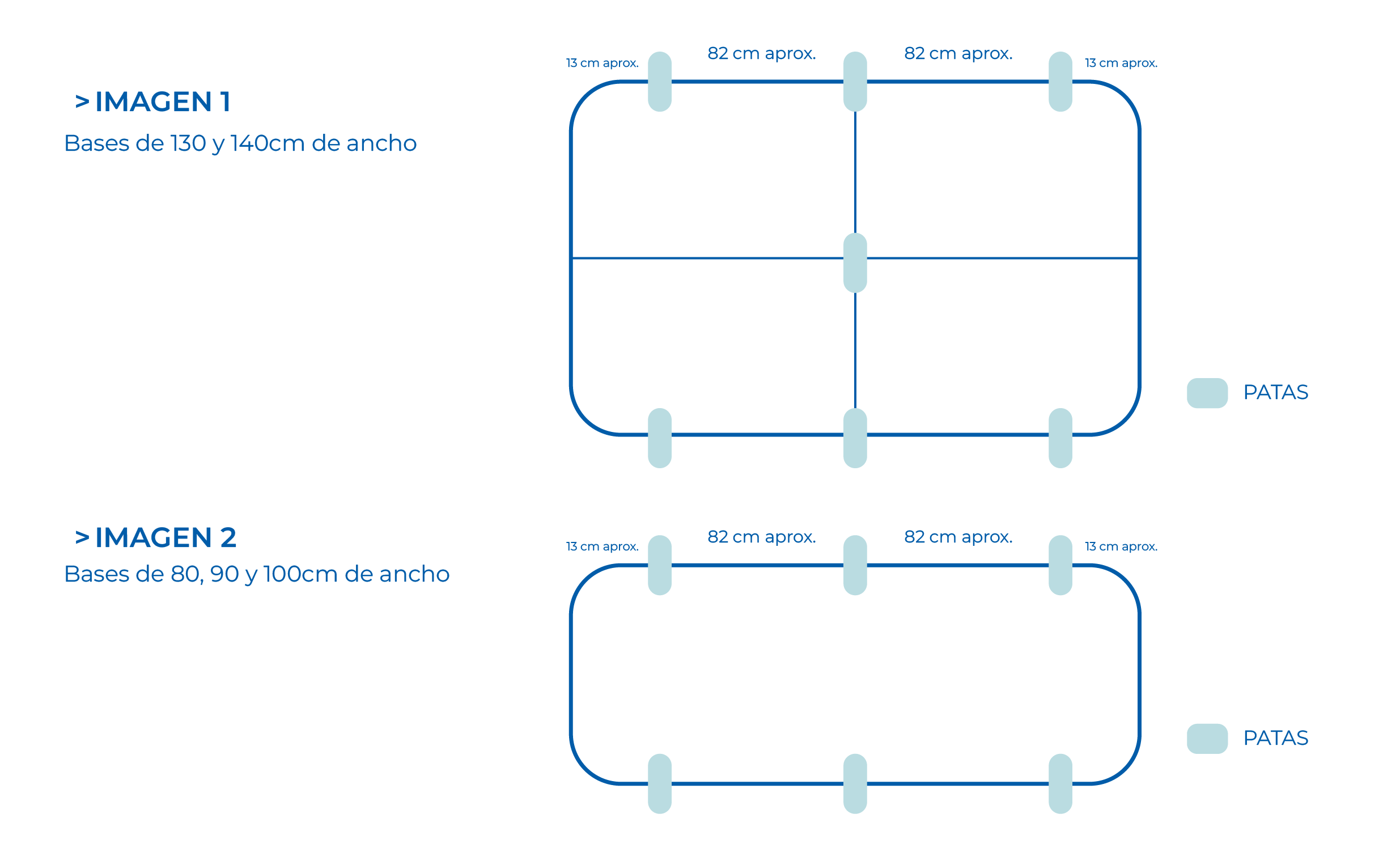 - ¿Como colocar las patas en la base del sommier? En el orifico indicado en el dibujos (imagen 1 e imagen 2) introducirlas dándole un golpe seco y enroscar.
