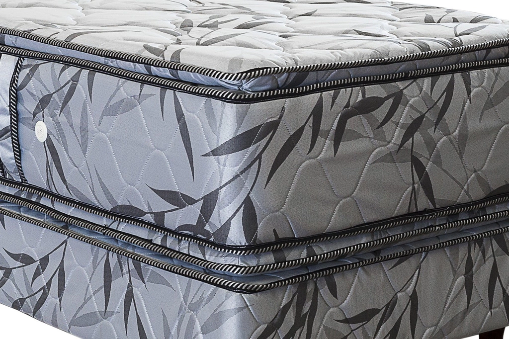 Descansá con la máxima comodidad que te ofrece este sommier con resorte Bonell y marco de acero perimetral reforzado. Su colchón de 33 cm de altura cuenta con espuma de alta densidad (24 kg) y doble pillow para un descanso superior. La base de madera con 6 patas torneadas y la tela jacquard matelaseada aportan elegancia y durabilidad. Incluye aireadores y manijas para facilitar su manejo. Recomendado para personas de hasta 100kg. Garantía de 18 meses. El diseño de la tela puede variar según stock.